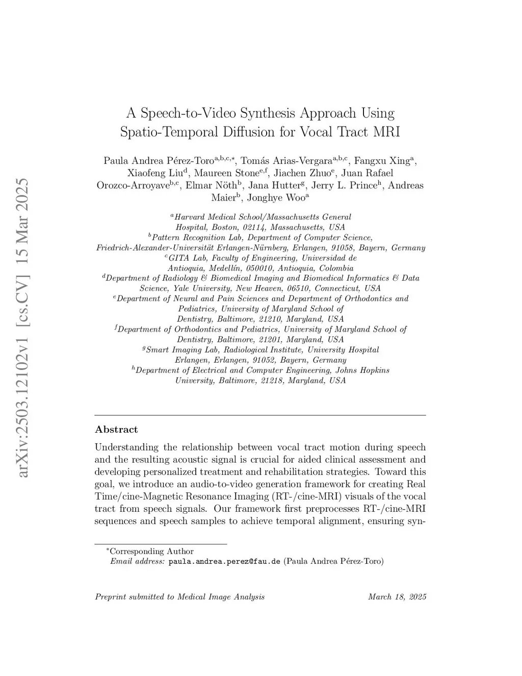 A Speech-to-Video Synthesis Approach Using Spatio-Temporal Diffusion for Vocal Tract MRI