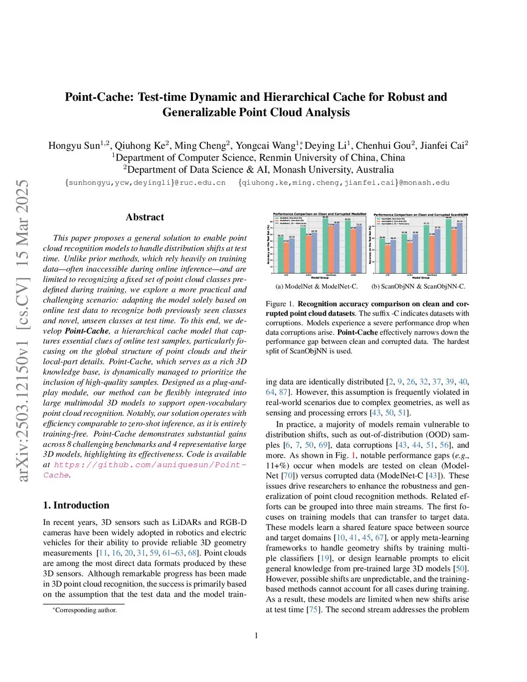 Point-Cache: Test-time Dynamic and Hierarchical Cache for Robust and Generalizable Point Cloud Analysis