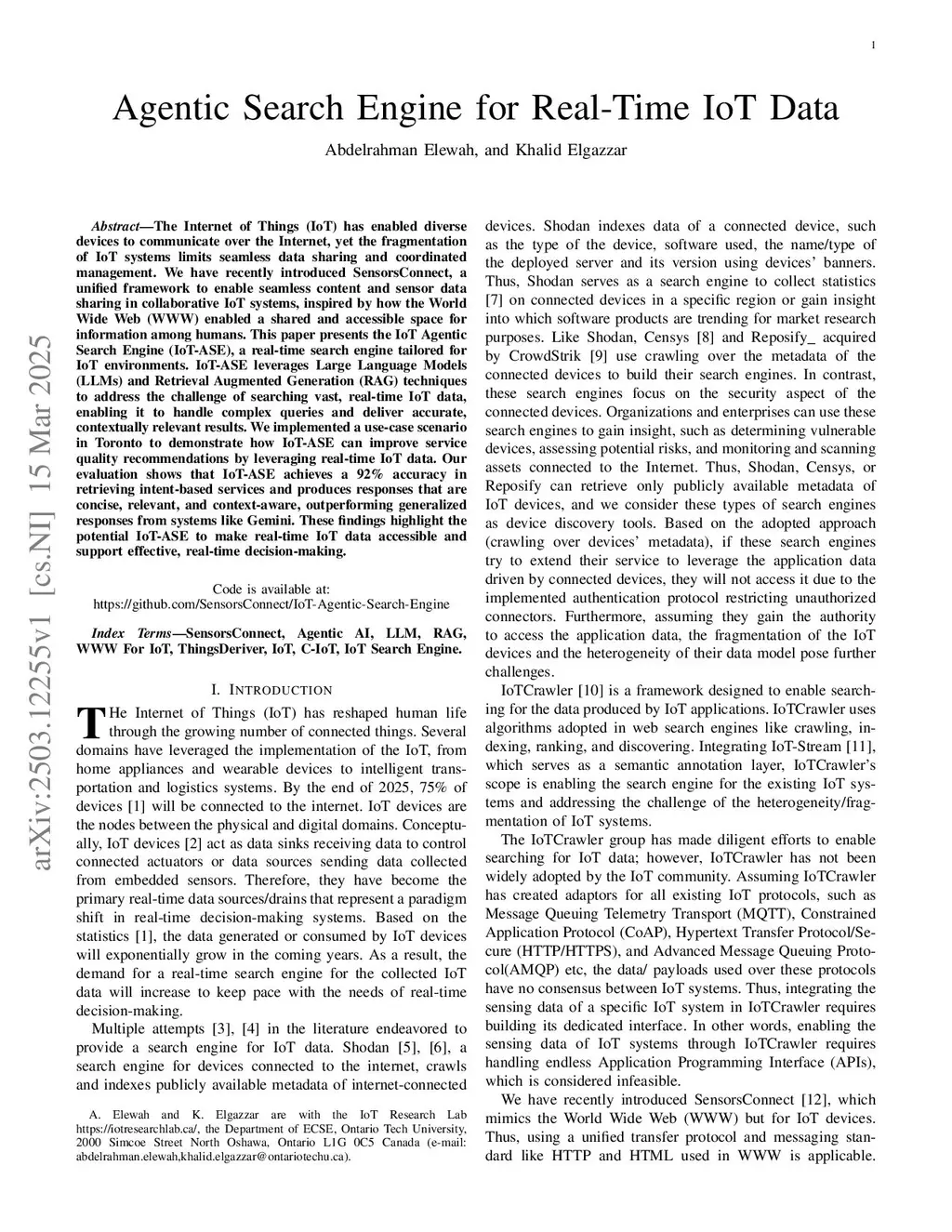 Agentic Search Engine for Real-Time IoT Data