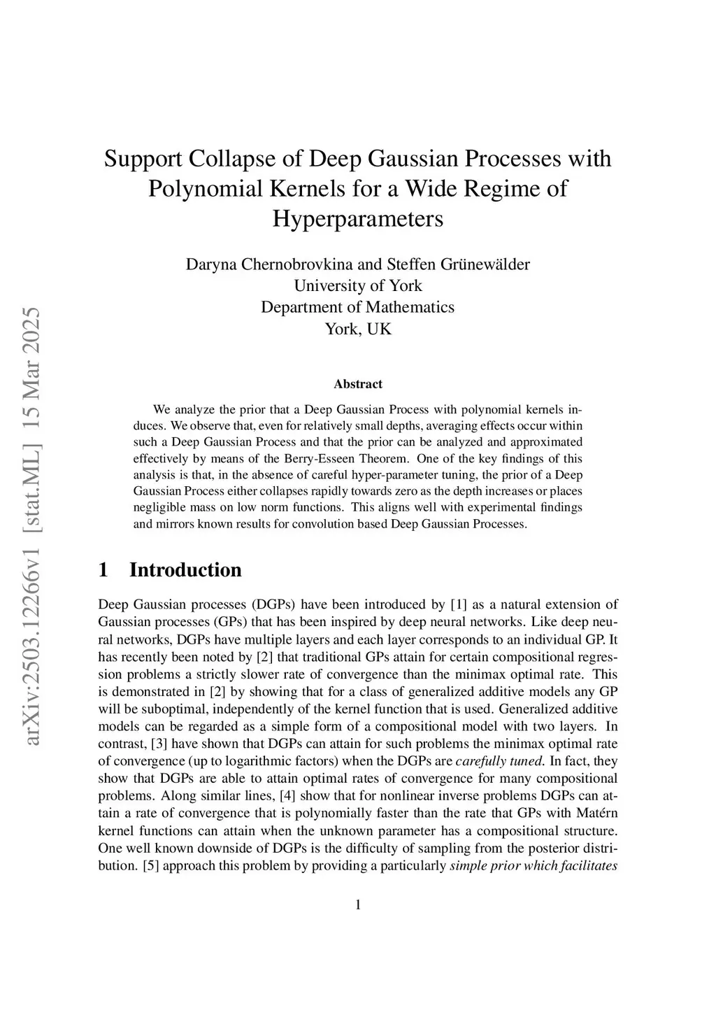 Support Collapse of Deep Gaussian Processes with Polynomial Kernels for a Wide Regime of Hyperparameters