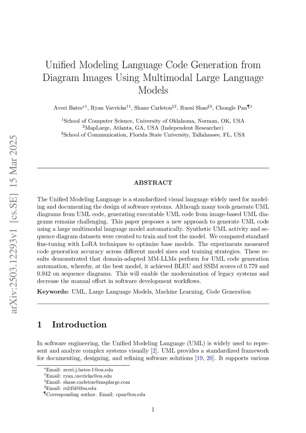 Unified Modeling Language Code Generation from Diagram Images Using Multimodal Large Language Models