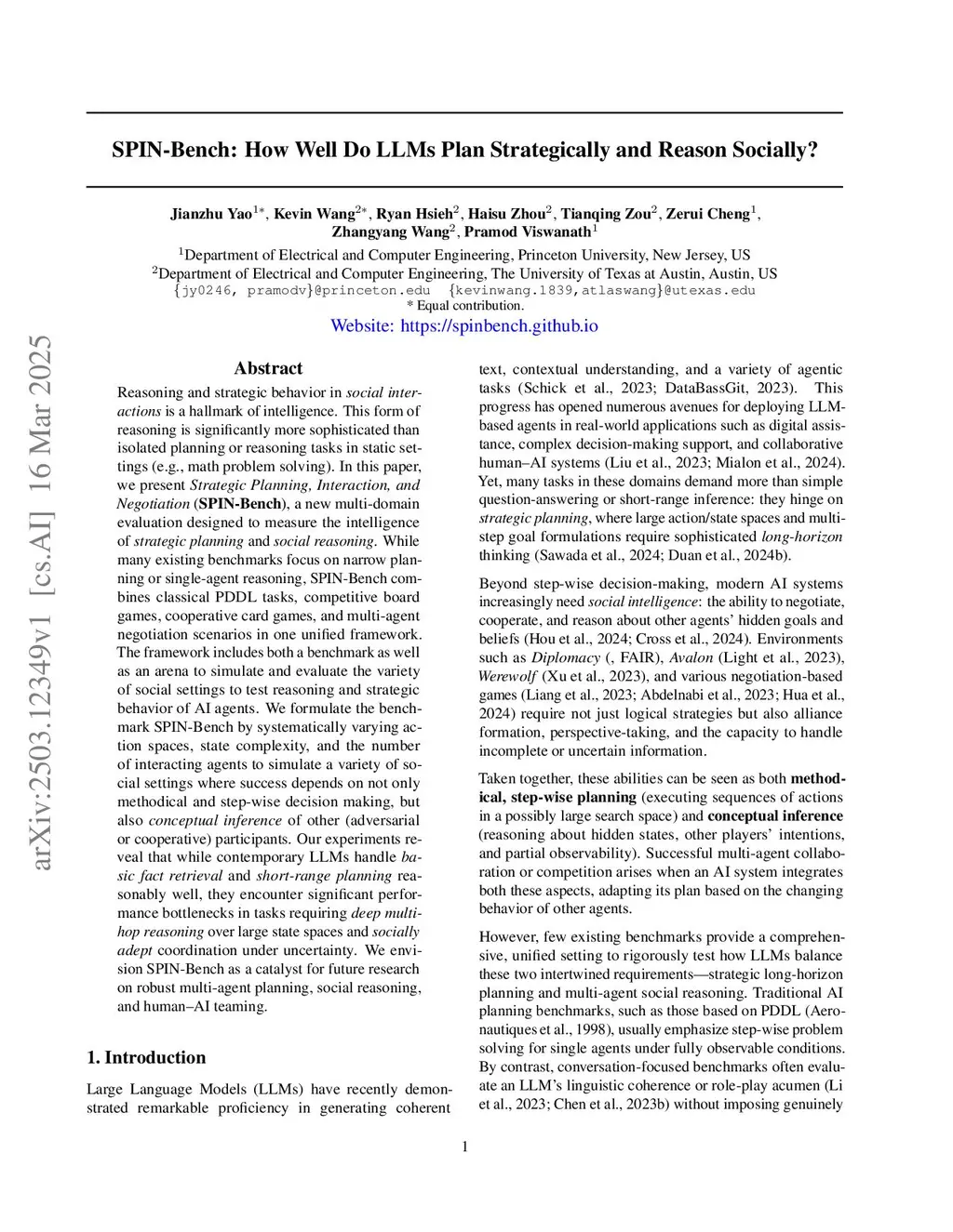 SPIN-Bench: How Well Do LLMs Plan Strategically and Reason Socially?