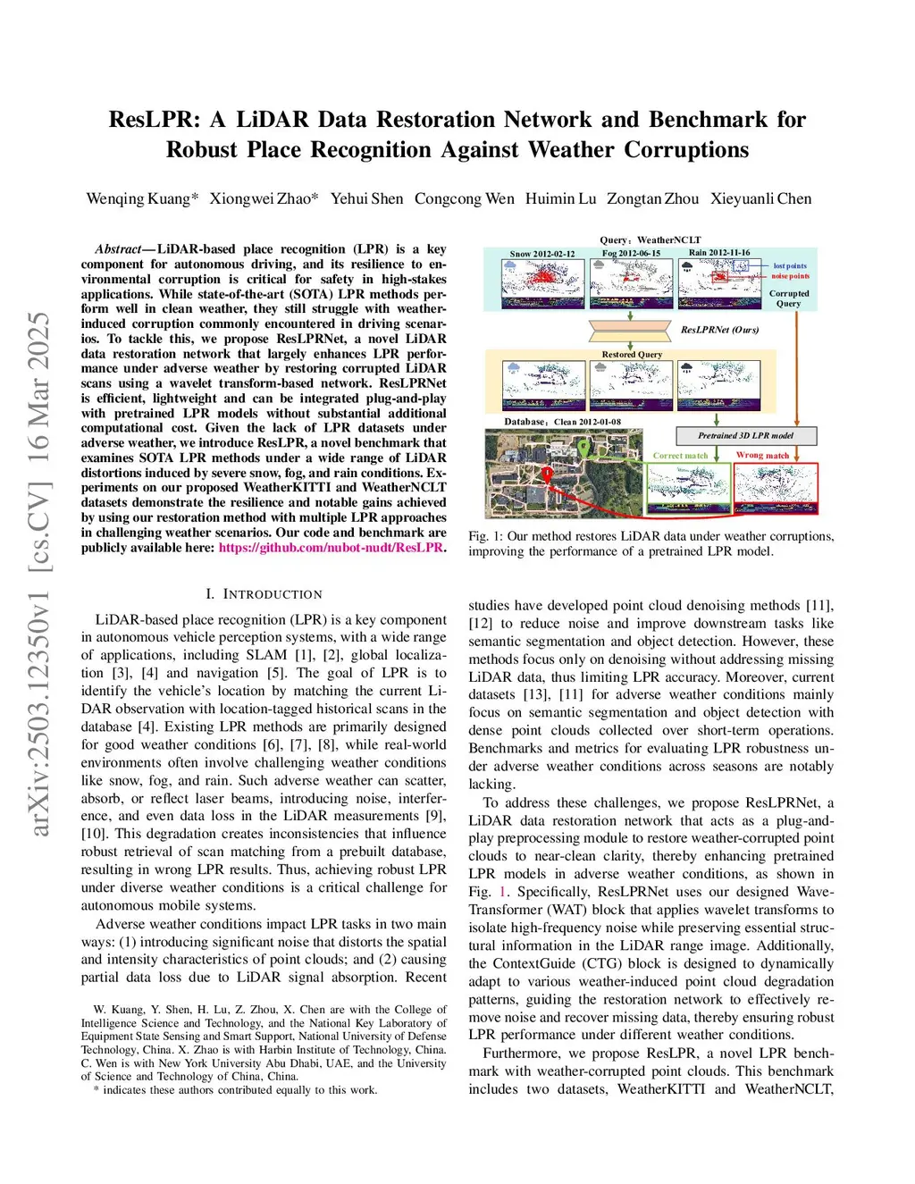 ResLPR: A LiDAR Data Restoration Network and Benchmark for Robust Place Recognition Against Weather Corruptions
