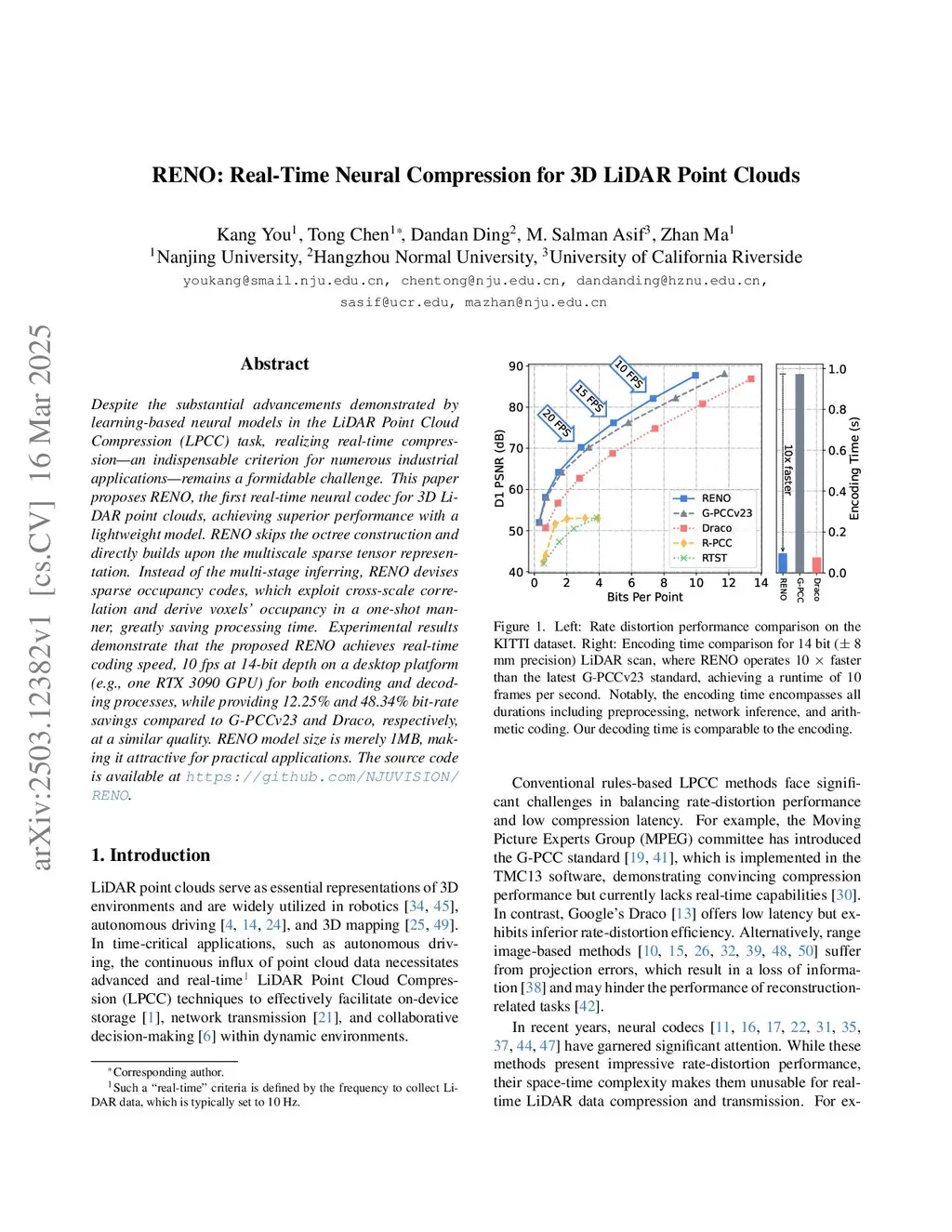 RENO: Real-Time Neural Compression for 3D LiDAR Point Clouds