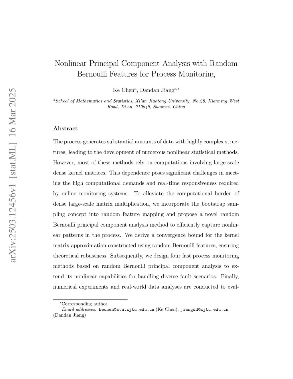 Nonlinear Principal Component Analysis with Random Bernoulli Features for Process Monitoring