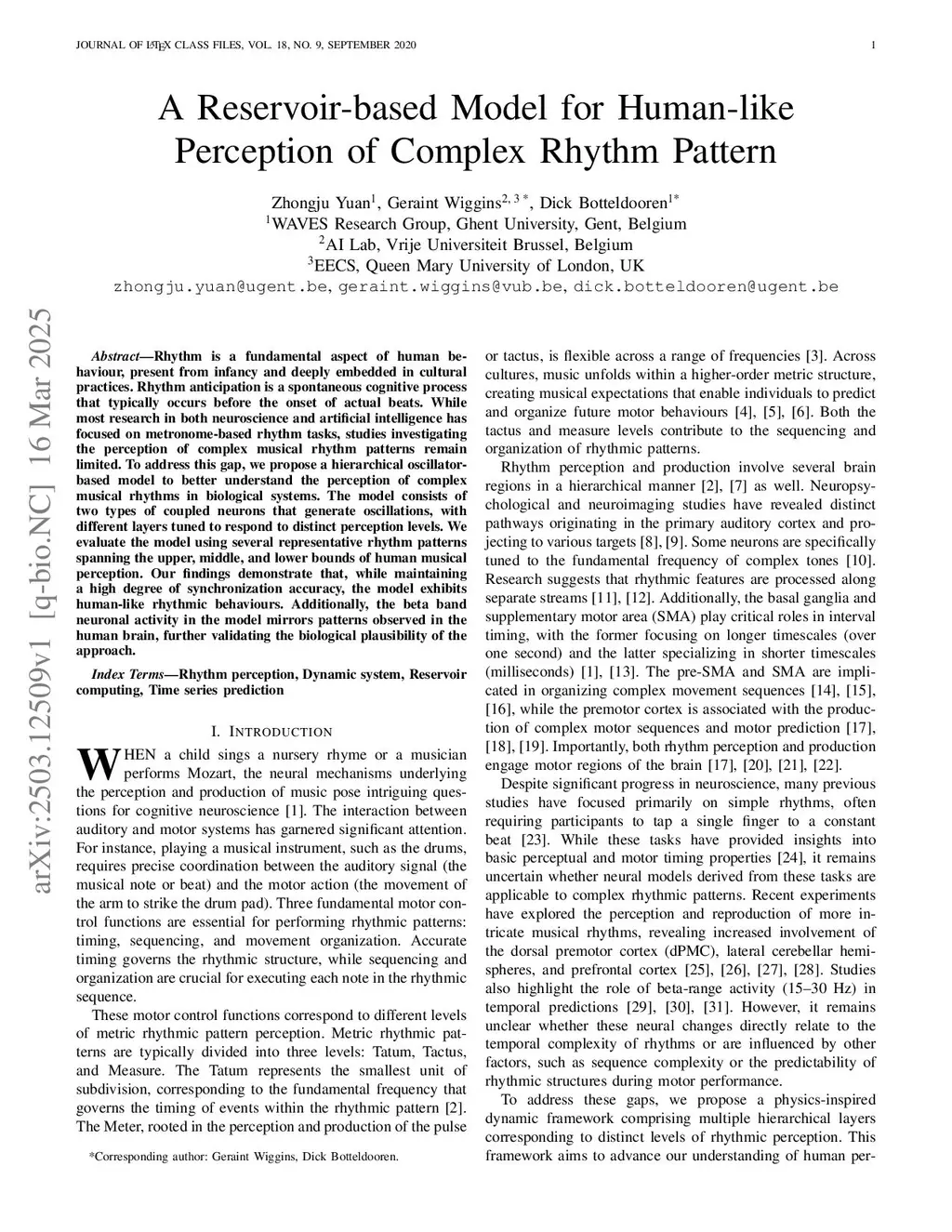 A Reservoir-based Model for Human-like Perception of Complex Rhythm Pattern