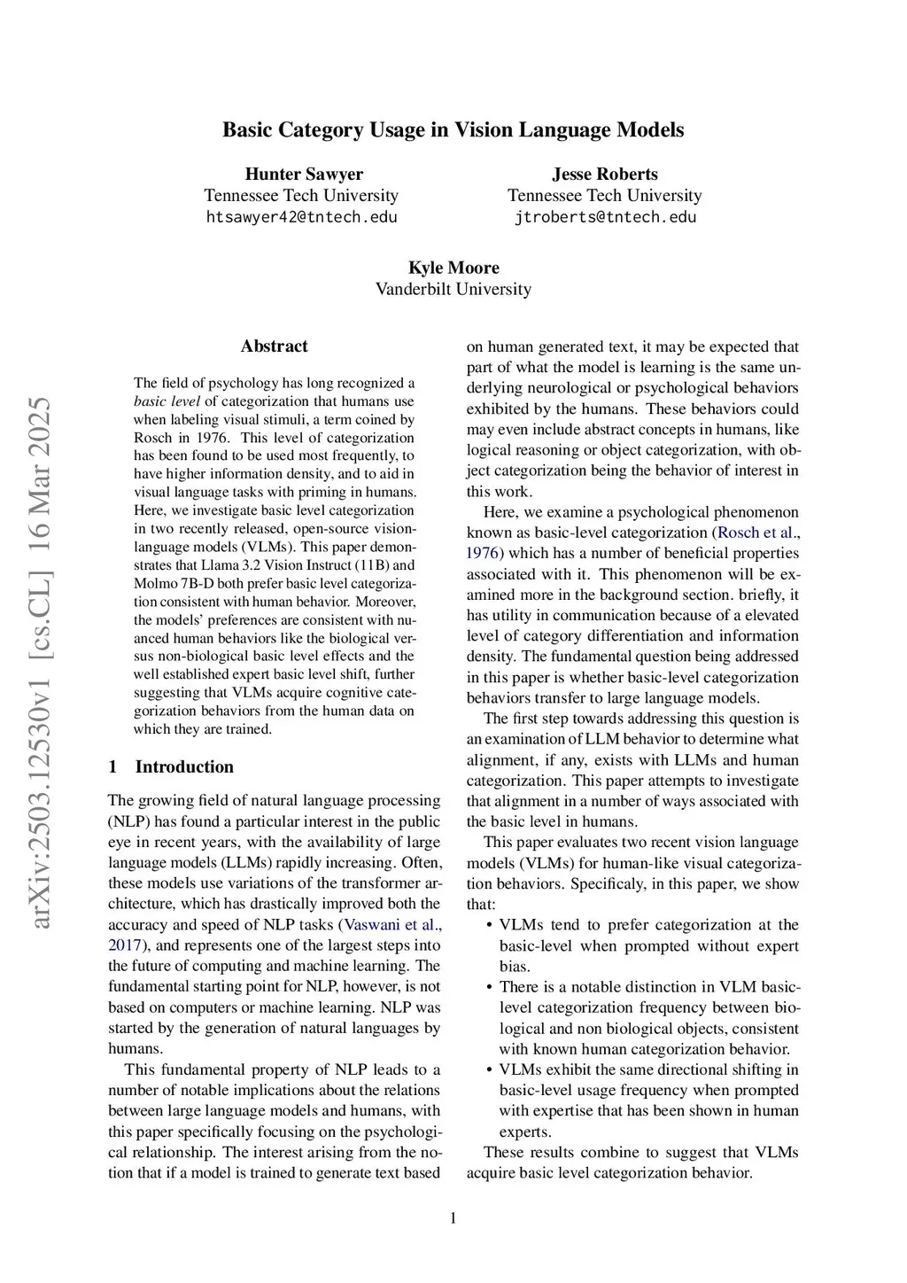 The field of psychology has long recognized a basic level of categorization that humans use when labeling visual stimuli, a term coined by Rosch in 1976. This level of categorization has been found to be used most frequently, to have higher information density, and to aid in visual language tasks with priming in humans. Here, we investigate basic level categorization in two recently released, open-source vision-language models (VLMs). This paper demonstrates that Llama 3.2 Vision Instruct (11B) and Molmo 7B-D both prefer basic level categorization consistent with human behavior. Moreover, the models' preferences are consistent with nuanced human behaviors like the biological versus non-biological basic level effects and the well established expert basic level shift, further suggesting that VLMs acquire cognitive categorization behaviors from the human data on which they are trained.