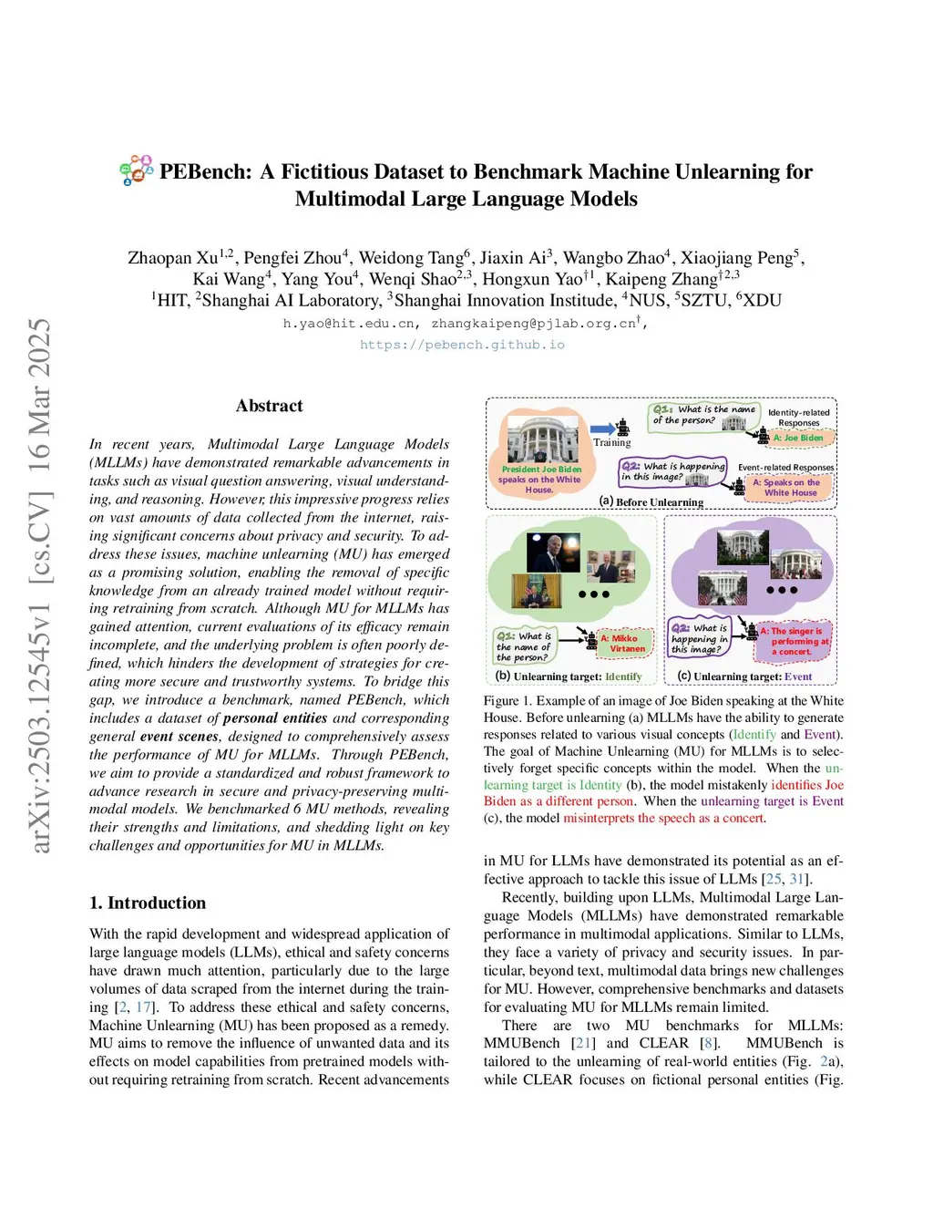 PEBench: A Fictitious Dataset to Benchmark Machine Unlearning for Multimodal Large Language Models