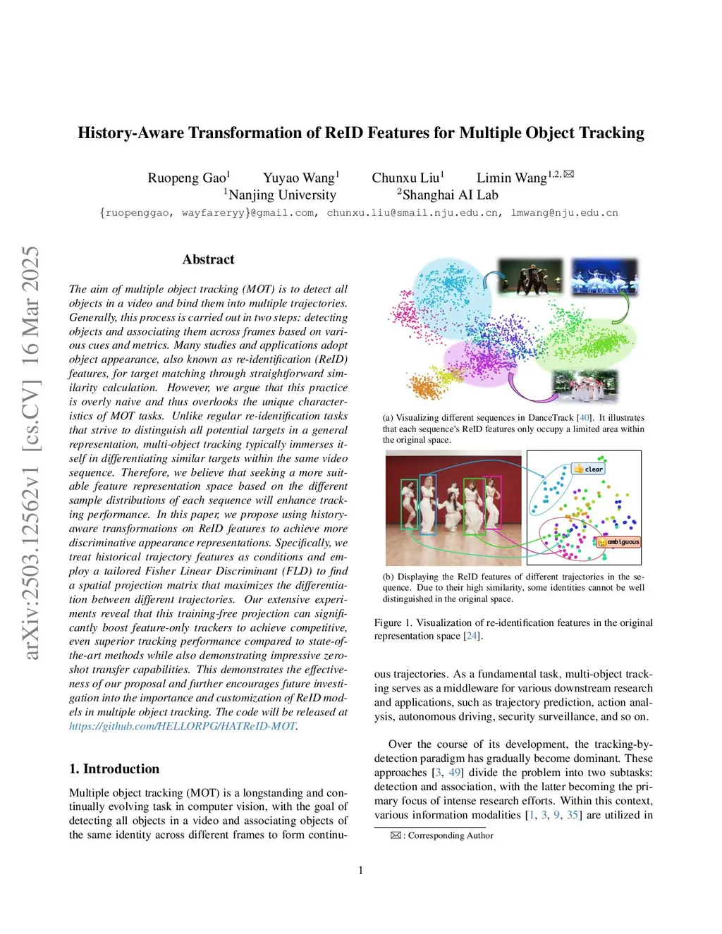 The aim of multiple object tracking (MOT) is to detect all objects in a video and bind them into multiple trajectories. Generally, this process is carried out in two steps: detecting objects and associating them across frames based on various cues and metrics. Many studies and applications adopt object appearance, also known as re-identification (ReID) features, for target matching through straightforward similarity calculation. However, we argue that this practice is overly naive and thus overlooks the unique characteristics of MOT tasks. Unlike regular re-identification tasks that strive to distinguish all potential targets in a general representation, multi-object tracking typically immerses itself in differentiating similar targets within the same video sequence. Therefore, we believe that seeking a more suitable feature representation space based on the different sample distributions of each sequence will enhance tracking performance. In this paper, we propose using history-aware transformations on ReID features to achieve more discriminative appearance representations. Specifically, we treat historical trajectory features as conditions and employ a tailored Fisher Linear Discriminant (FLD) to find a spatial projection matrix that maximizes the differentiation between different trajectories. Our extensive experiments reveal that this training-free projection can significantly boost feature-only trackers to achieve competitive, even superior tracking performance compared to state-of-the-art methods while also demonstrating impressive zero-shot transfer capabilities. This demonstrates the effectiveness of our proposal and further encourages future investigation into the importance and customization of ReID models in multiple object tracking. The code will be released atthis https URL.