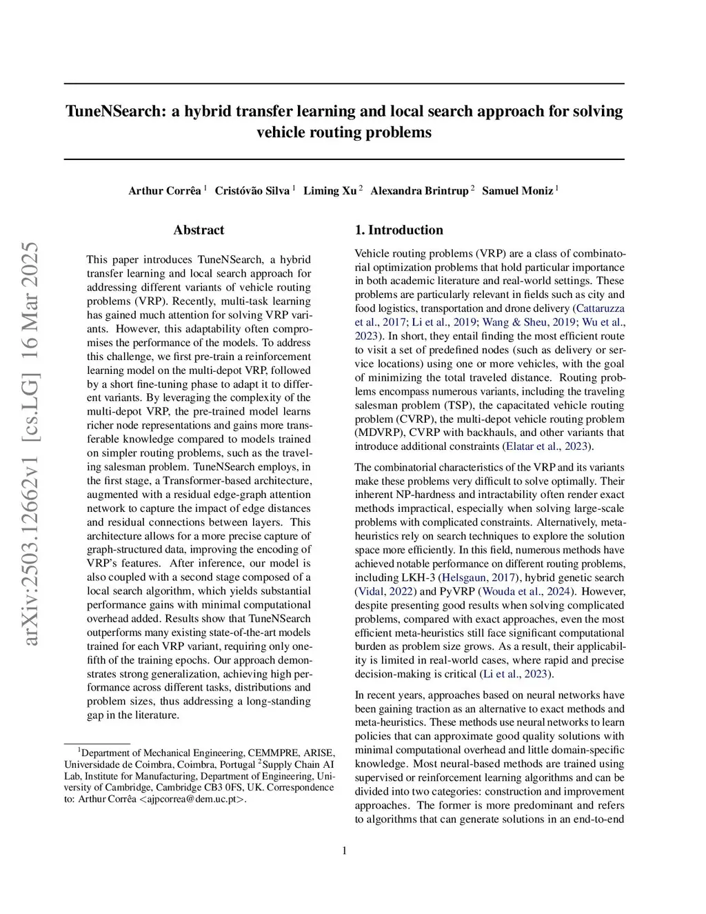 TuneNSearch: a hybrid transfer learning and local search approach for solving vehicle routing problems