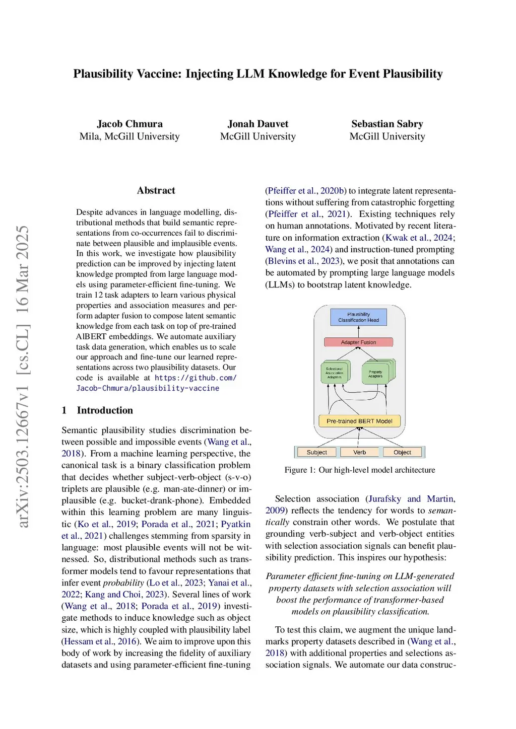 Plausibility Vaccine: Injecting LLM Knowledge for Event Plausibility