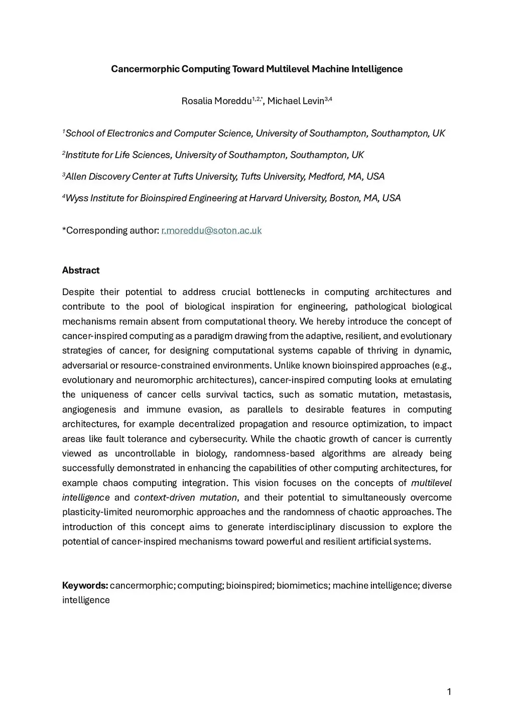 Cancermorphic Computing Toward Multilevel Machine Intelligence