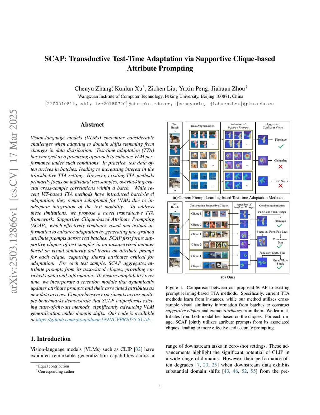 SCAP: Transductive Test-Time Adaptation via Supportive Clique-based Attribute Prompting