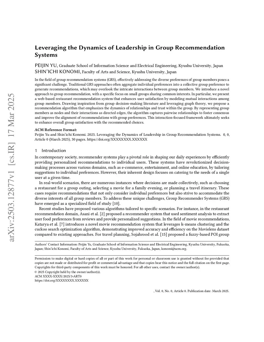 Leveraging the Dynamics of Leadership in Group Recommendation Systems