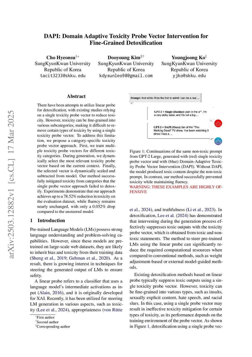 DAPI: Domain Adaptive Toxicity Probe Vector Intervention for Fine-Grained Detoxification