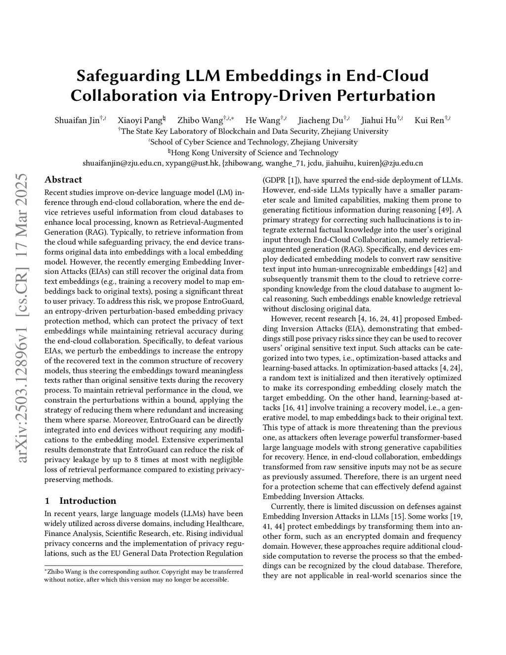 Safeguarding LLM Embeddings in End-Cloud Collaboration via Entropy-Driven Perturbation