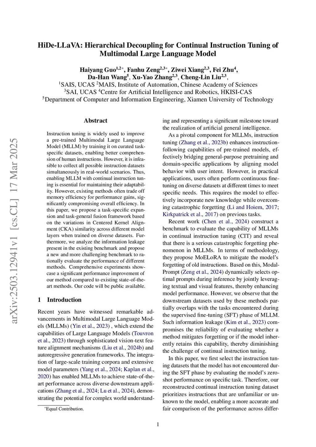 HiDe-LLaVA: Hierarchical Decoupling for Continual Instruction Tuning of Multimodal Large Language Model