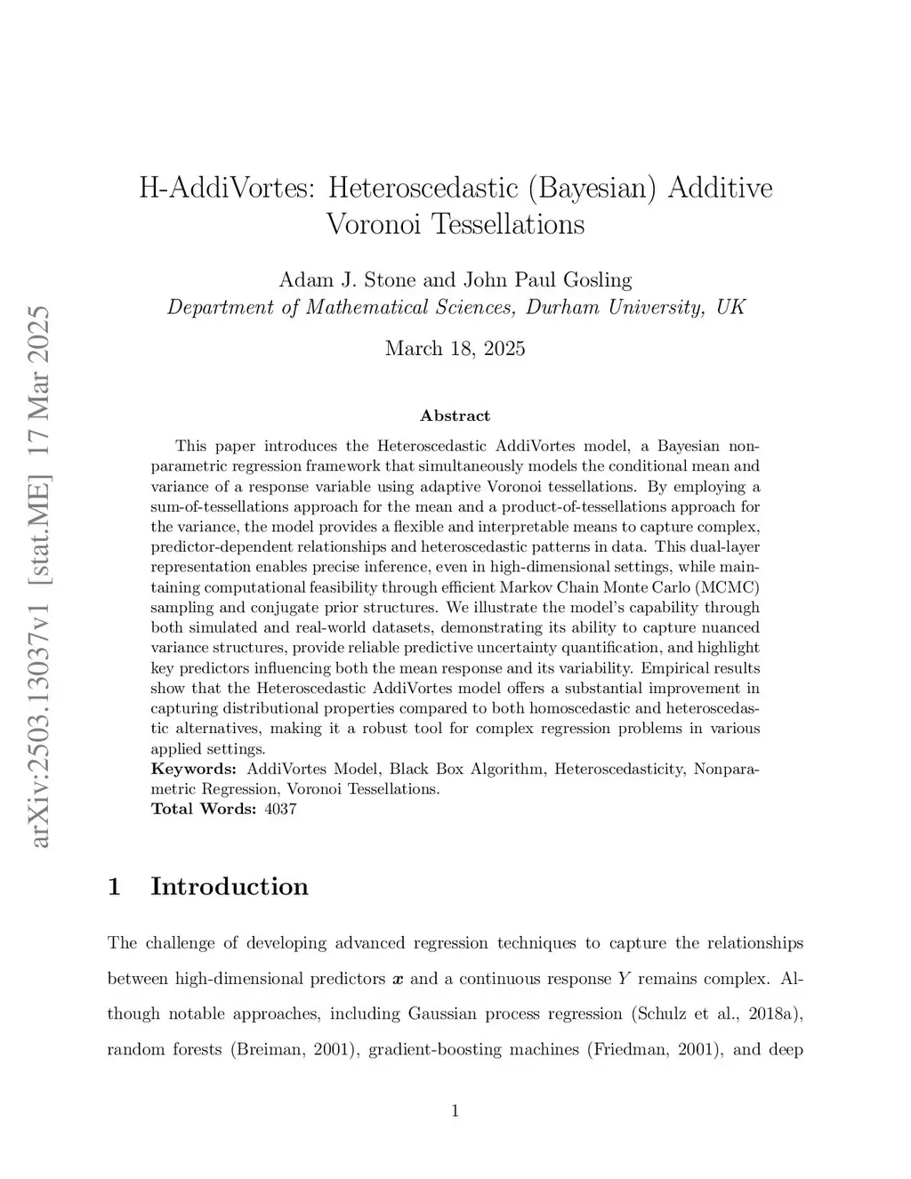 H-AddiVortes: Heteroscedastic (Bayesian) Additive Voronoi Tessellations
