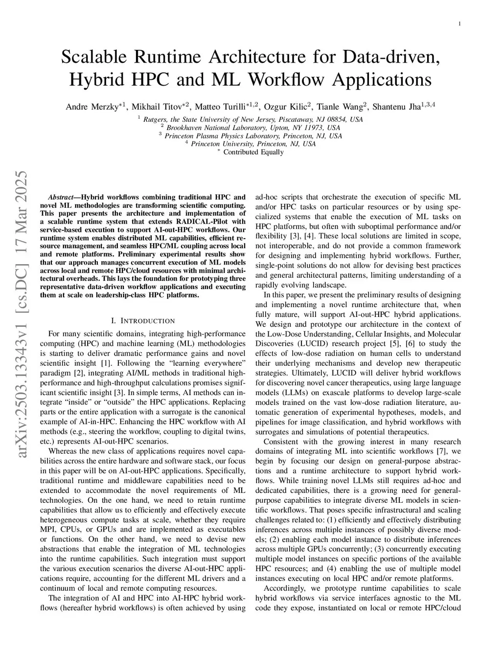 Scalable Runtime Architecture for Data-driven, Hybrid HPC and ML Workflow Applications