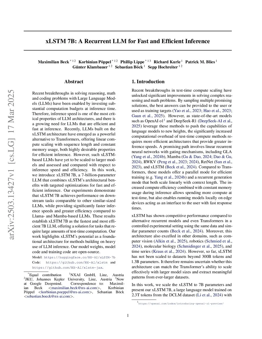 xLSTM 7B: A Recurrent LLM for Fast and Efficient Inference