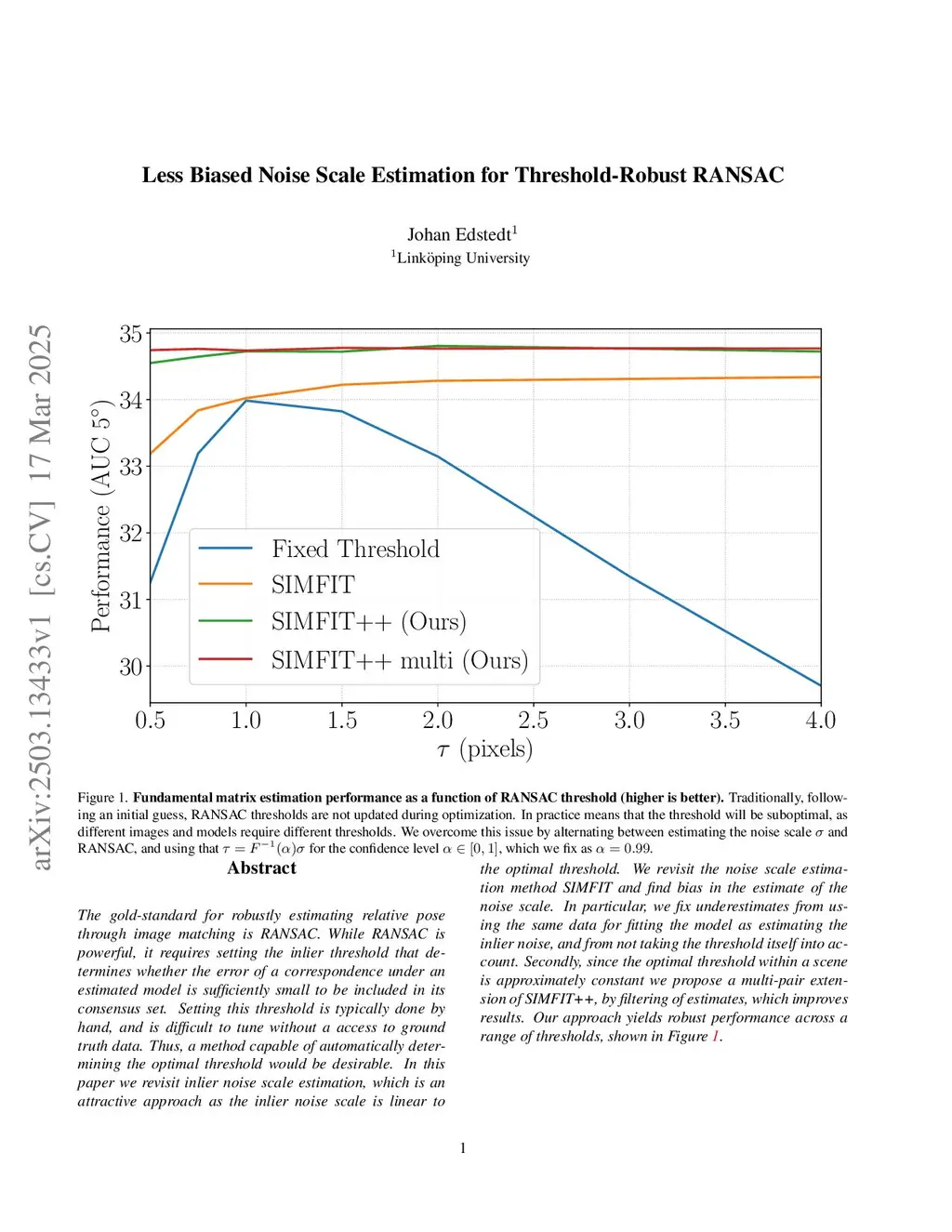 The gold-standard for robustly estimating relative pose through image matching is RANSAC. While RANSAC is powerful, it requires setting the inlier threshold that determines whether the error of a correspondence under an estimated model is sufficiently small to be included in its consensus set. Setting this threshold is typically done by hand, and is difficult to tune without an access to ground truth data. Thus, a method capable of automatically determining the optimal threshold would be desirable. In this paper we revisit inlier noise scale estimation, which is an attractive approach as the inlier noise scale is linear to the optimal threshold. We revisit the noise scale estimation method SIMFIT and find bias in the estimate of the noise scale. In particular, we fix underestimates from using the same data for fitting the model as estimating the inlier noise, and from not taking the threshold itself into account. Secondly, since the optimal threshold within a scene is approximately constant we propose a multi-pair extension of SIMFIT++, by filtering of estimates, which improves results. Our approach yields robust performance across a range of thresholds, shown in Figure 1. Code is available atthis https URL