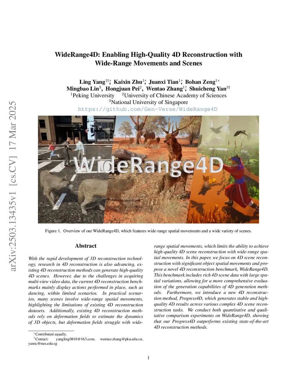 With the rapid development of 3D reconstruction technology, research in 4D reconstruction is also advancing, existing 4D reconstruction methods can generate high-quality 4D scenes. However, due to the challenges in acquiring multi-view video data, the current 4D reconstruction benchmarks mainly display actions performed in place, such as dancing, within limited scenarios. In practical scenarios, many scenes involve wide-range spatial movements, highlighting the limitations of existing 4D reconstruction datasets. Additionally, existing 4D reconstruction methods rely on deformation fields to estimate the dynamics of 3D objects, but deformation fields struggle with wide-range spatial movements, which limits the ability to achieve high-quality 4D scene reconstruction with wide-range spatial movements. In this paper, we focus on 4D scene reconstruction with significant object spatial movements and propose a novel 4D reconstruction benchmark, WideRange4D. This benchmark includes rich 4D scene data with large spatial variations, allowing for a more comprehensive evaluation of the generation capabilities of 4D generation methods. Furthermore, we introduce a new 4D reconstruction method, Progress4D, which generates stable and high-quality 4D results across various complex 4D scene reconstruction tasks. We conduct both quantitative and qualitative comparison experiments on WideRange4D, showing that our Progress4D outperforms existing state-of-the-art 4D reconstruction methods. Project:this https URL