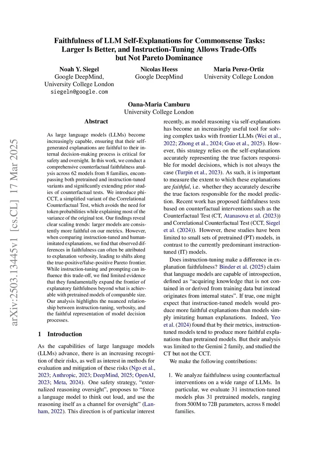 When asked to explain their decisions, LLMs can often give explanations which sound plausible to humans. But are these explanations faithful, i.e. do they convey the factors actually responsible for the decision? In this work, we analyse counterfactual faithfulness across 75 models from 13 families. We analyze the tradeoff between conciseness and comprehensiveness, how correlational faithfulness metrics assess this tradeoff, and the extent to which metrics can be gamed. This analysis motivates two new metrics: the phi-CCT, a simplified variant of the Correlational Counterfactual Test (CCT) which avoids the need for token probabilities while explaining most of the variance of the original test; and F-AUROC, which eliminates sensitivity to imbalanced intervention distributions and captures a model's ability to produce explanations with different levels of detail. Our findings reveal a clear scaling trend: larger and more capable models are consistently more faithful on all metrics we consider. Our code is available atthis https URL.