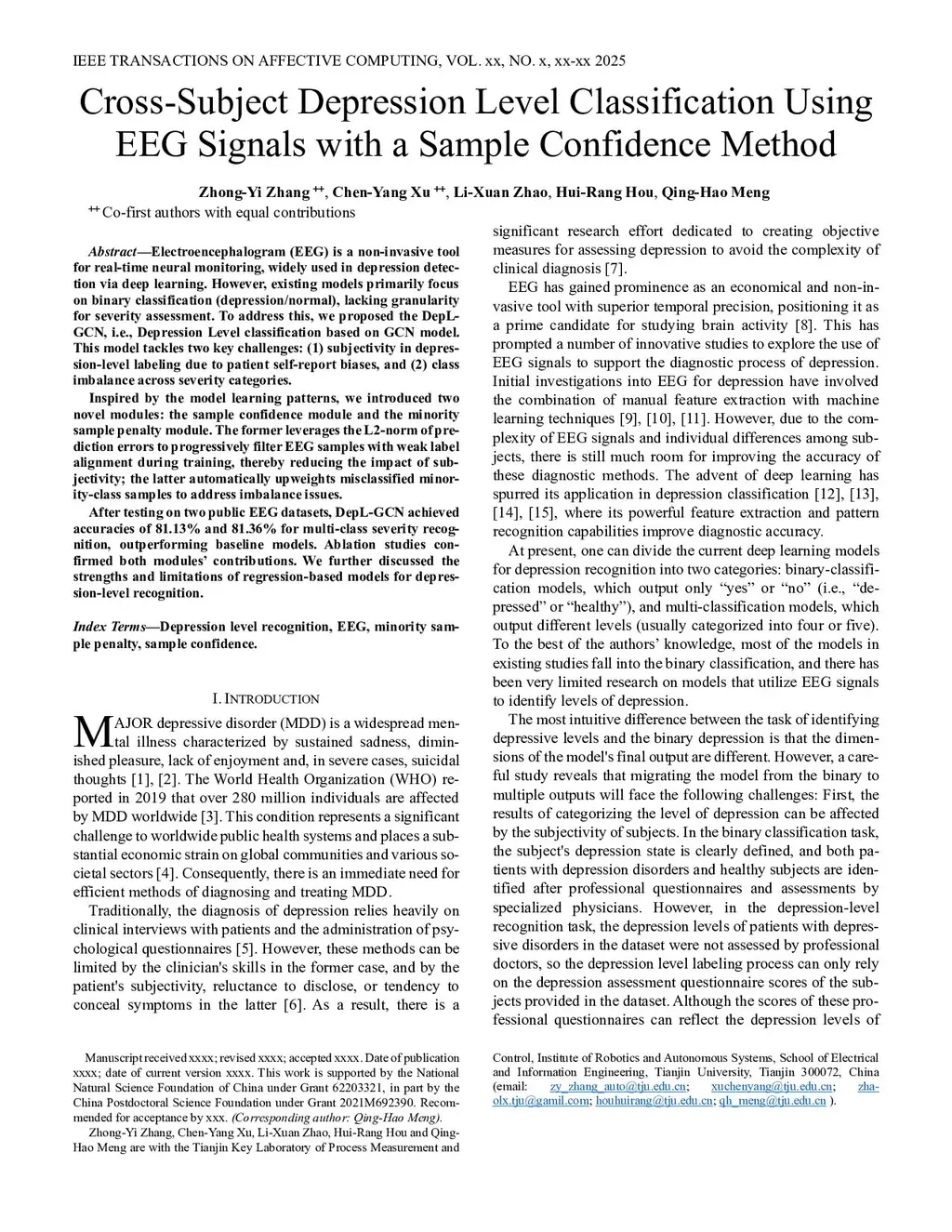 Cross-Subject Depression Level Classification Using EEG Signals with a Sample Confidence Method