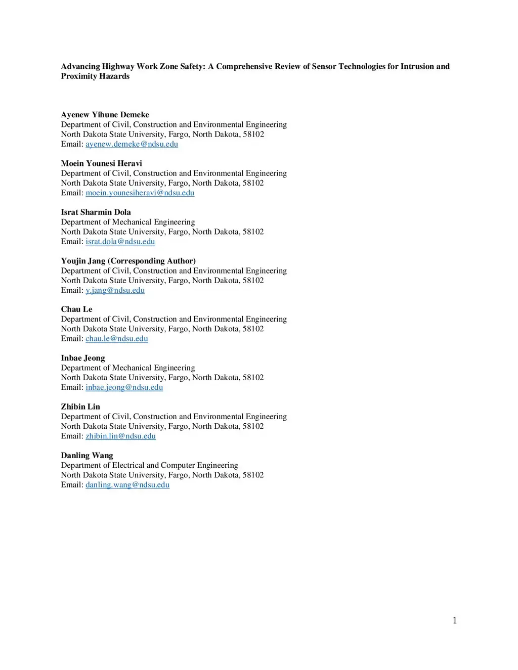 Advancing Highway Work Zone Safety: A Comprehensive Review of Sensor Technologies for Intrusion and Proximity Hazards