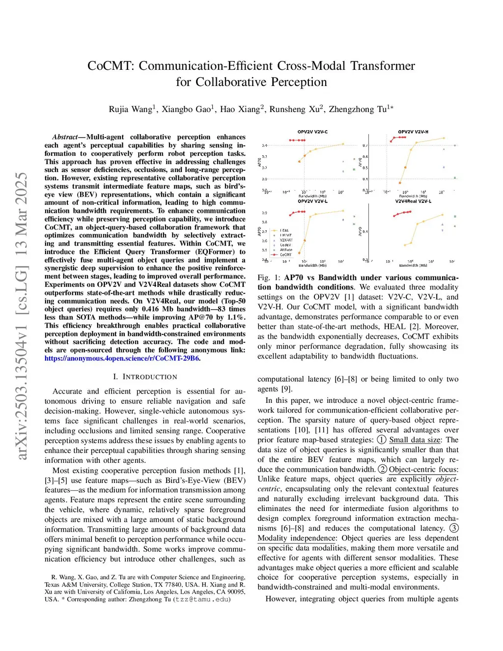 CoCMT: Communication-Efficient Cross-Modal Transformer for Collaborative Perception
