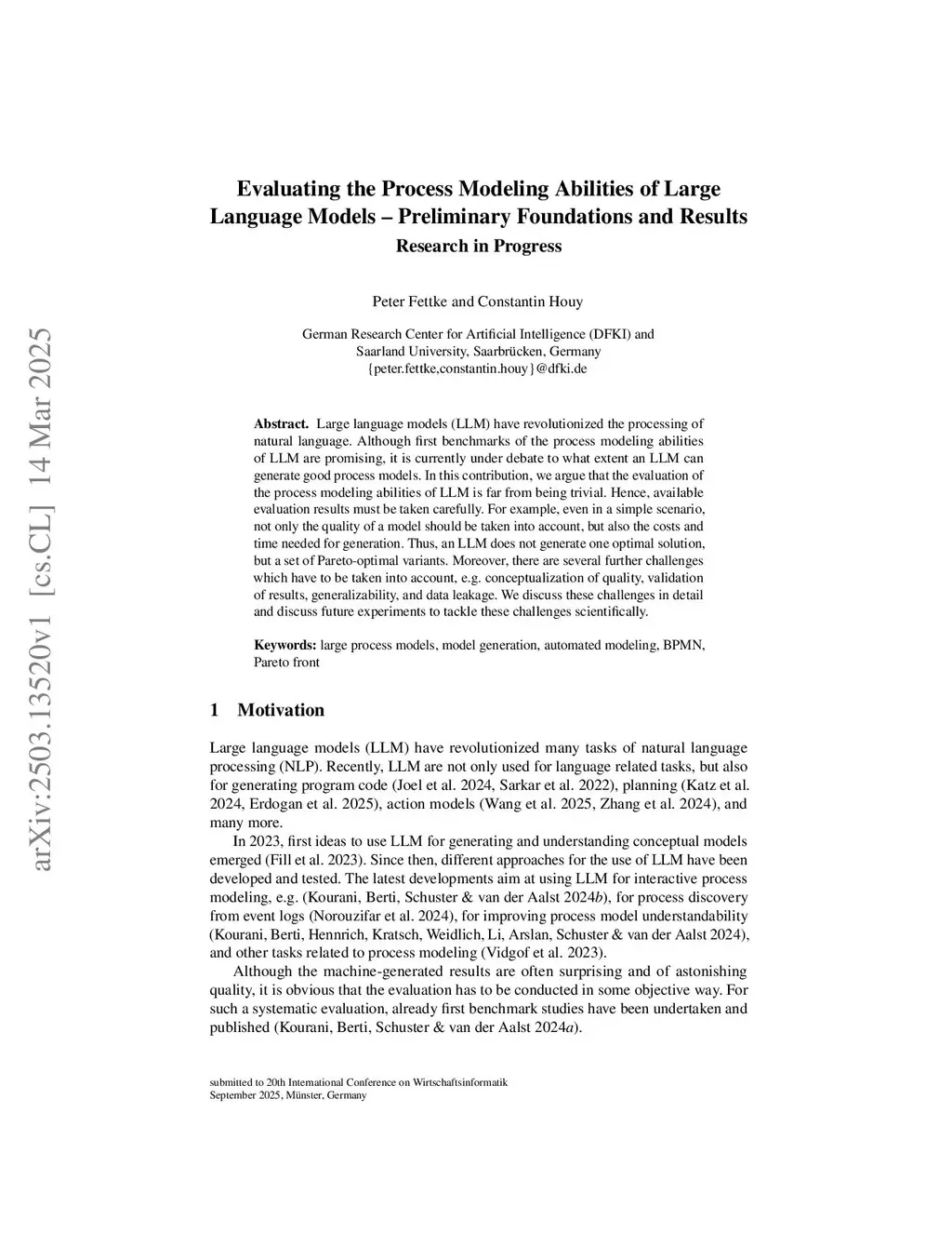 Large language models (LLM) have revolutionized the processing of natural language. Although first benchmarks of the process modeling abilities of LLM are promising, it is currently under debate to what extent an LLM can generate good process models. In this contribution, we argue that the evaluation of the process modeling abilities of LLM is far from being trivial. Hence, available evaluation results must be taken carefully. For example, even in a simple scenario, not only the quality of a model should be taken into account, but also the costs and time needed for generation. Thus, an LLM does not generate one optimal solution, but a set of Pareto-optimal variants. Moreover, there are several further challenges which have to be taken into account, e.g. conceptualization of quality, validation of results, generalizability, and data leakage. We discuss these challenges in detail and discuss future experiments to tackle these challenges scientifically.