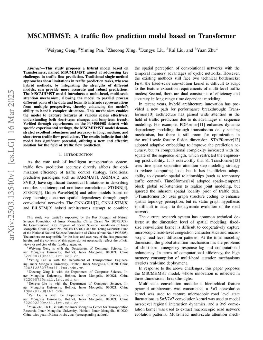 MSCMHMST: A traffic flow prediction model based on Transformer