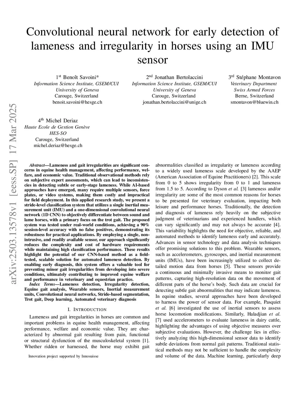 Convolutional neural network for early detection of lameness and irregularity in horses using an IMU sensor