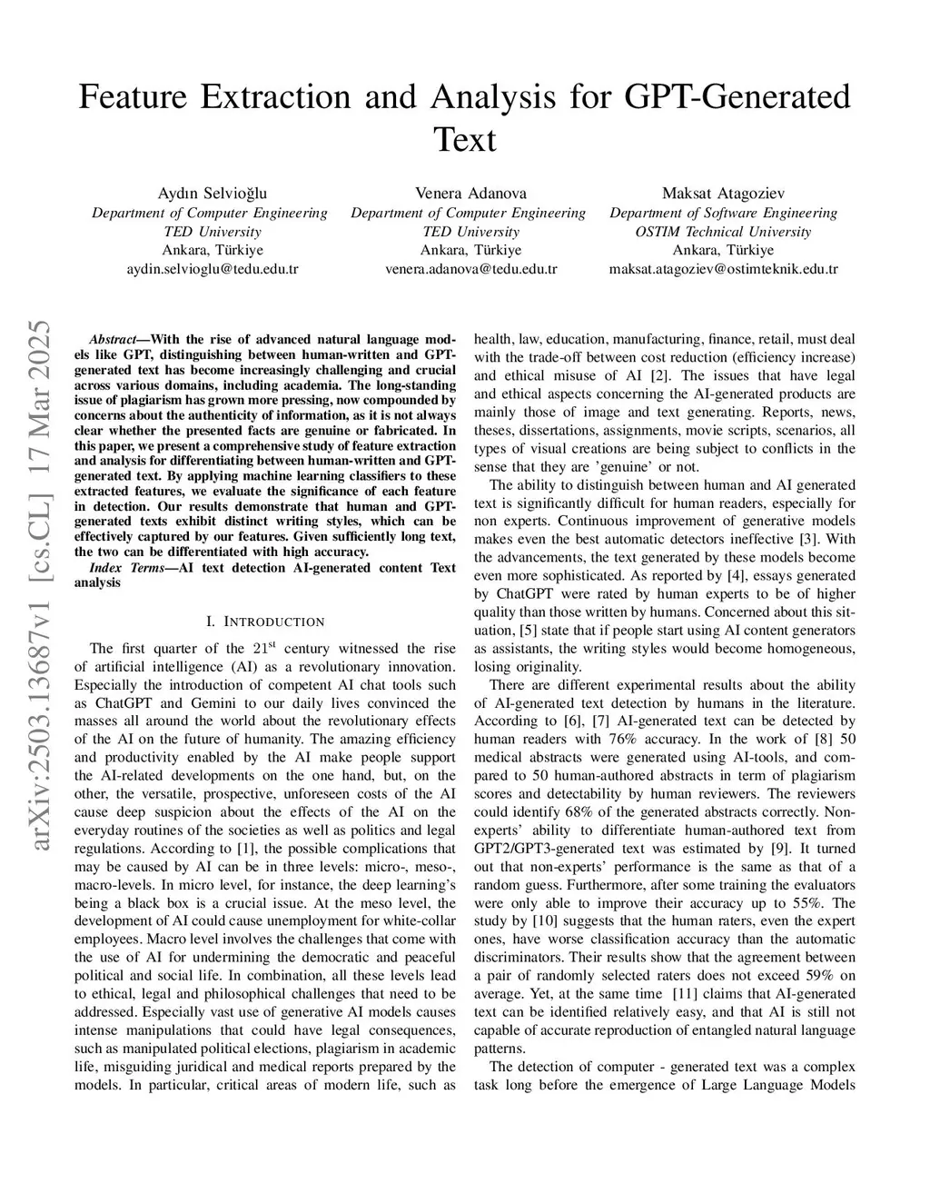 Feature Extraction and Analysis for GPT-Generated Text