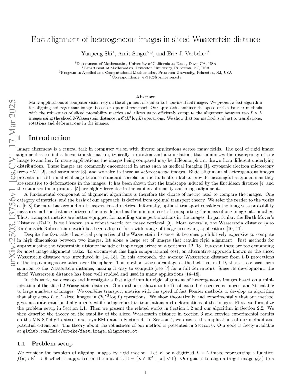 Many applications of computer vision rely on the alignment of similar but non-identical images. We present a fast algorithm for aligning heterogeneous images based on optimal transport. Our approach combines the speed of fast Fourier methods with the robustness of sliced probability metrics and allows us to efficiently compute the alignment between two images using the sliced 2-Wasserstein distance in operations. We show that our method is robust to translations, rotations and deformations in the images.