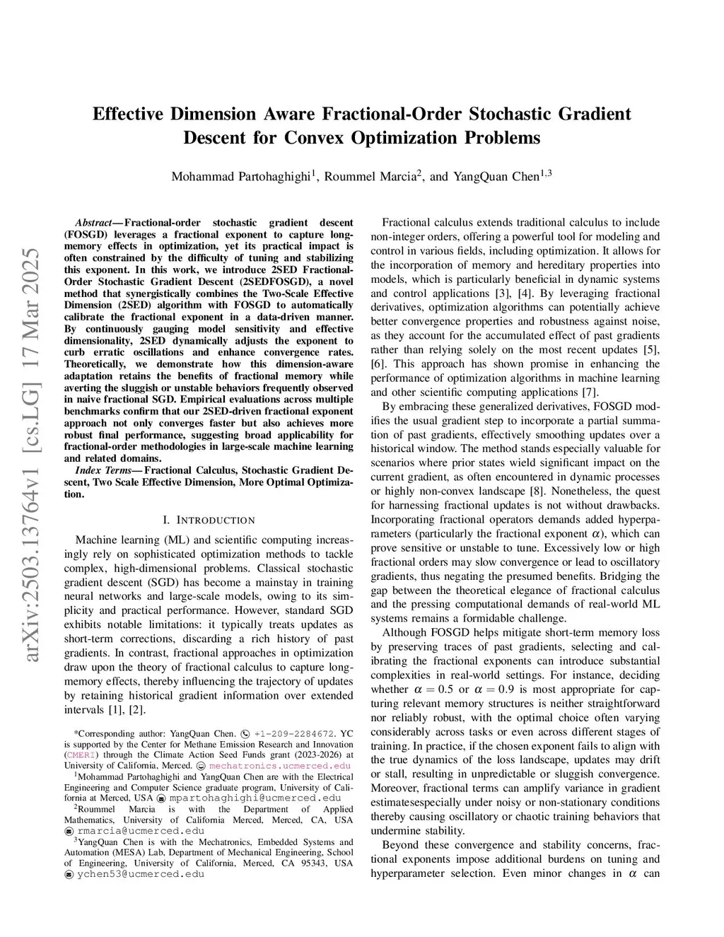 Effective Dimension Aware Fractional-Order Stochastic Gradient Descent for Convex Optimization Problems