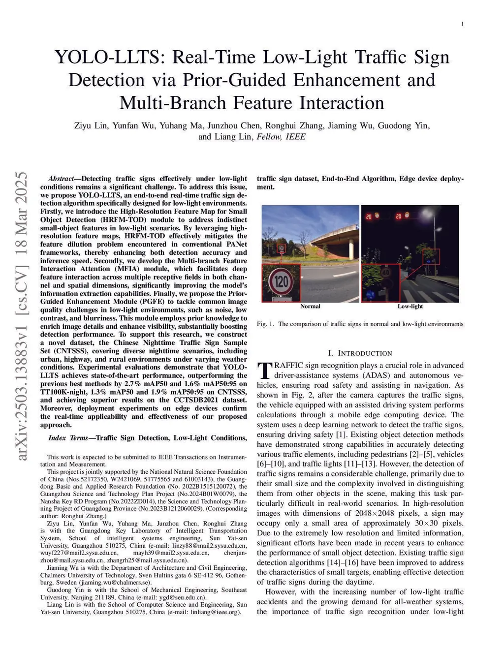 YOLO-LLTS: Real-Time Low-Light Traffic Sign Detection via Prior-Guided Enhancement and Multibranch Feature Interaction