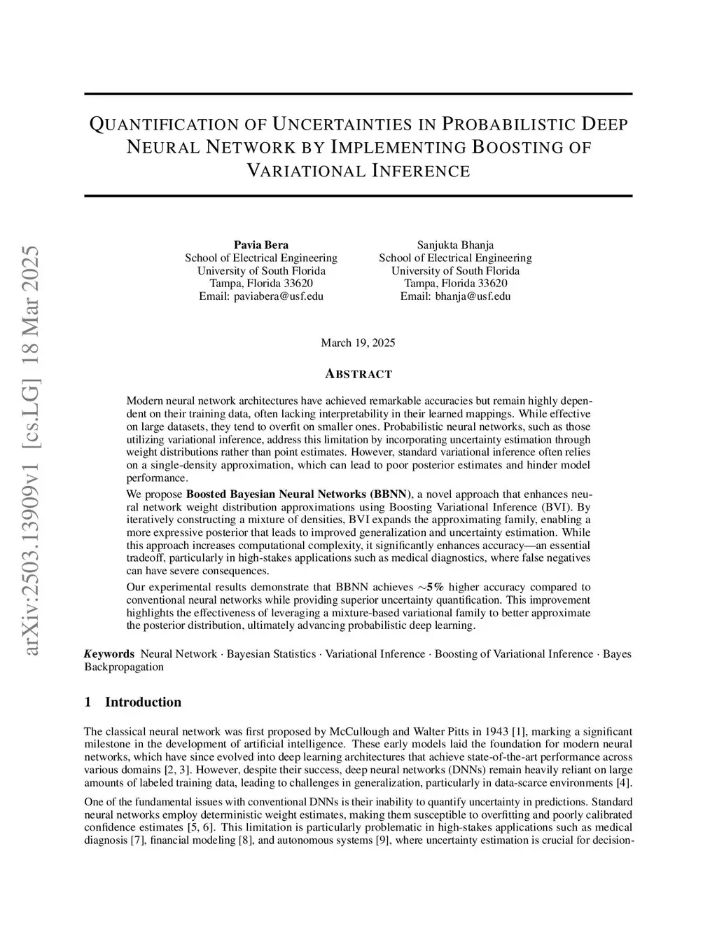 Quantification of Uncertainties in Probabilistic Deep Neural Network by Implementing Boosting of Variational Inference