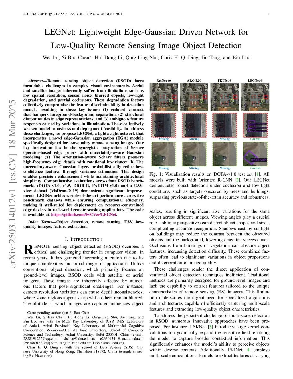 LEGNet: A Lightweight Edge-Gaussian Network for Low-Quality Remote Sensing Image Object Detection