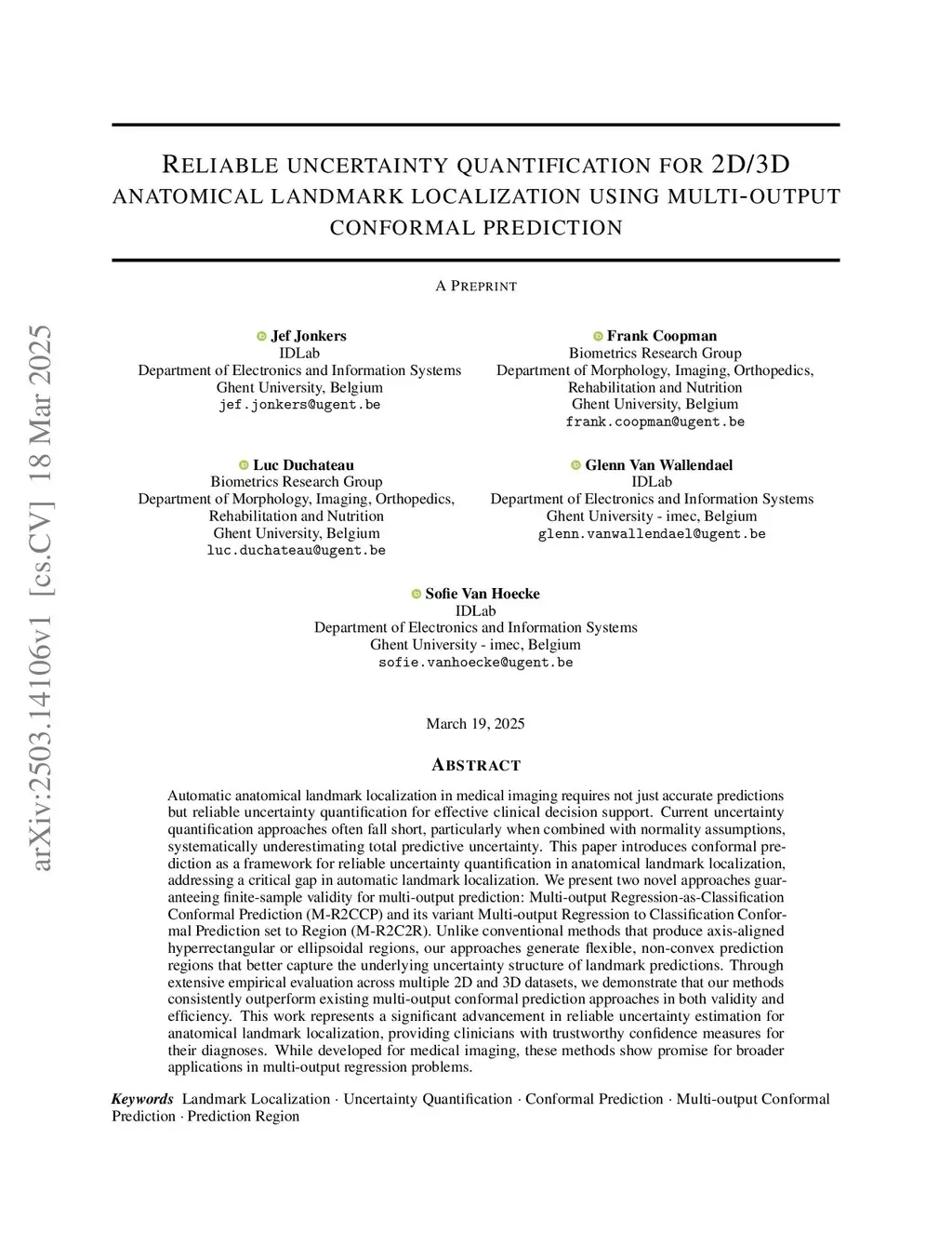 Reliable uncertainty quantification for 2D/3D anatomical landmark localization using multi-output conformal prediction