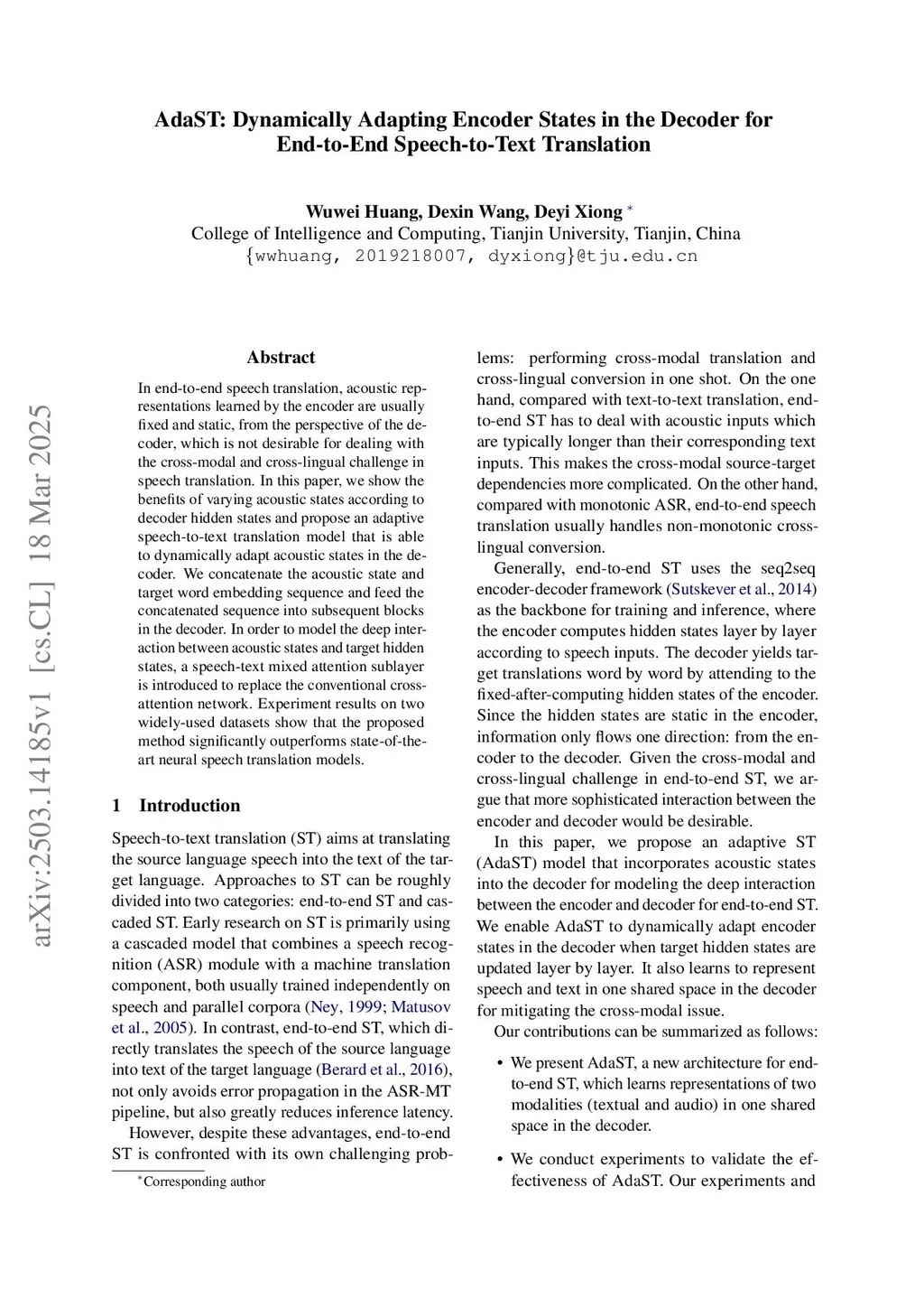 AdaST: Dynamically Adapting Encoder States in the Decoder for End-to-End Speech-to-Text Translation