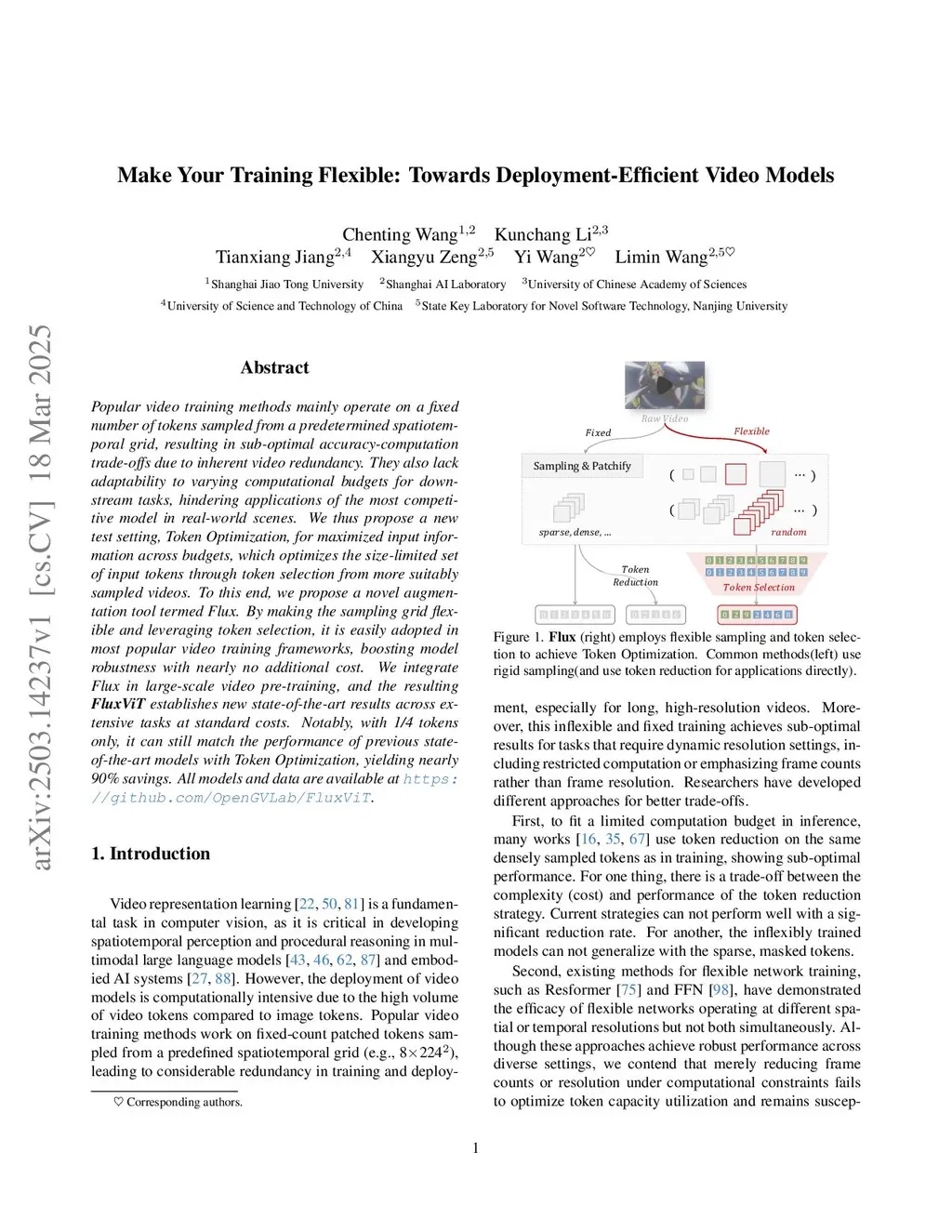 Popular video training methods mainly operate on a fixed number of tokens sampled from a predetermined spatiotemporal grid, resulting in sub-optimal accuracy-computation trade-offs due to inherent video redundancy. They also lack adaptability to varying computational budgets for downstream tasks, hindering applications of the most competitive model in real-world scenes. We thus propose a new test setting, Token Optimization, for maximized input information across budgets, which optimizes the size-limited set of input tokens through token selection from more suitably sampled videos. To this end, we propose a novel augmentation tool termed Flux. By making the sampling grid flexible and leveraging token selection, it is easily adopted in most popular video training frameworks, boosting model robustness with nearly no additional cost. We integrate Flux in large-scale video pre-training, and the resulting FluxViT establishes new state-of-the-art results across extensive tasks at standard costs. Notably, with 1/4 tokens only, it can still match the performance of previous state-of-the-art models with Token Optimization, yielding nearly 90\% savings. All models and data are available atthis https URL.