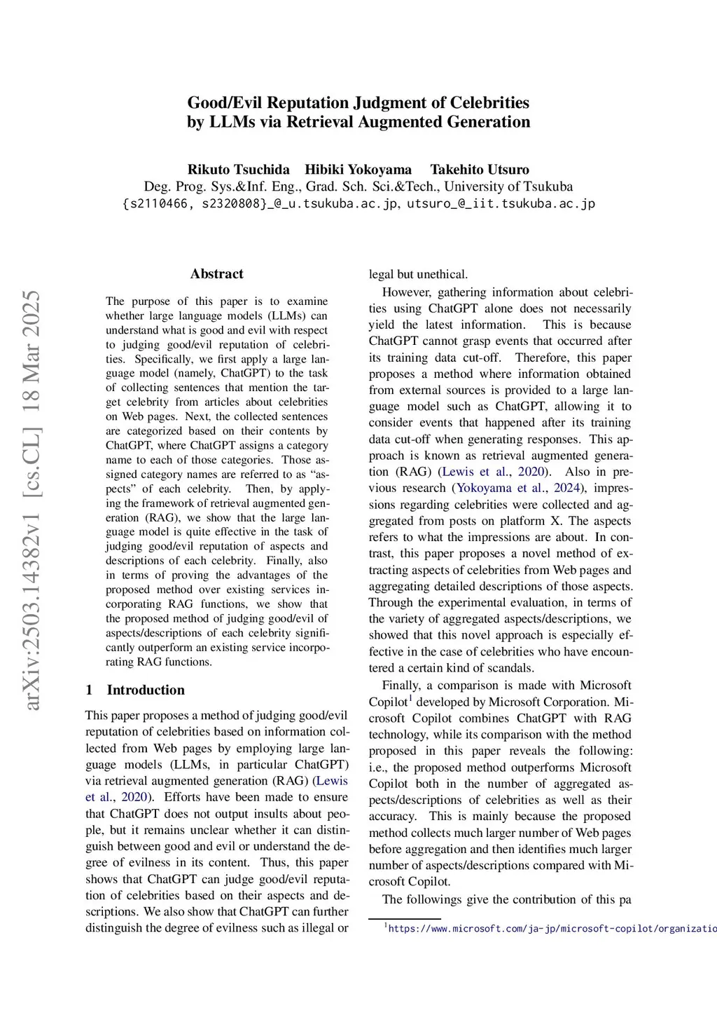 Good/Evil Reputation Judgment of Celebrities by LLMs via Retrieval Augmented Generation
