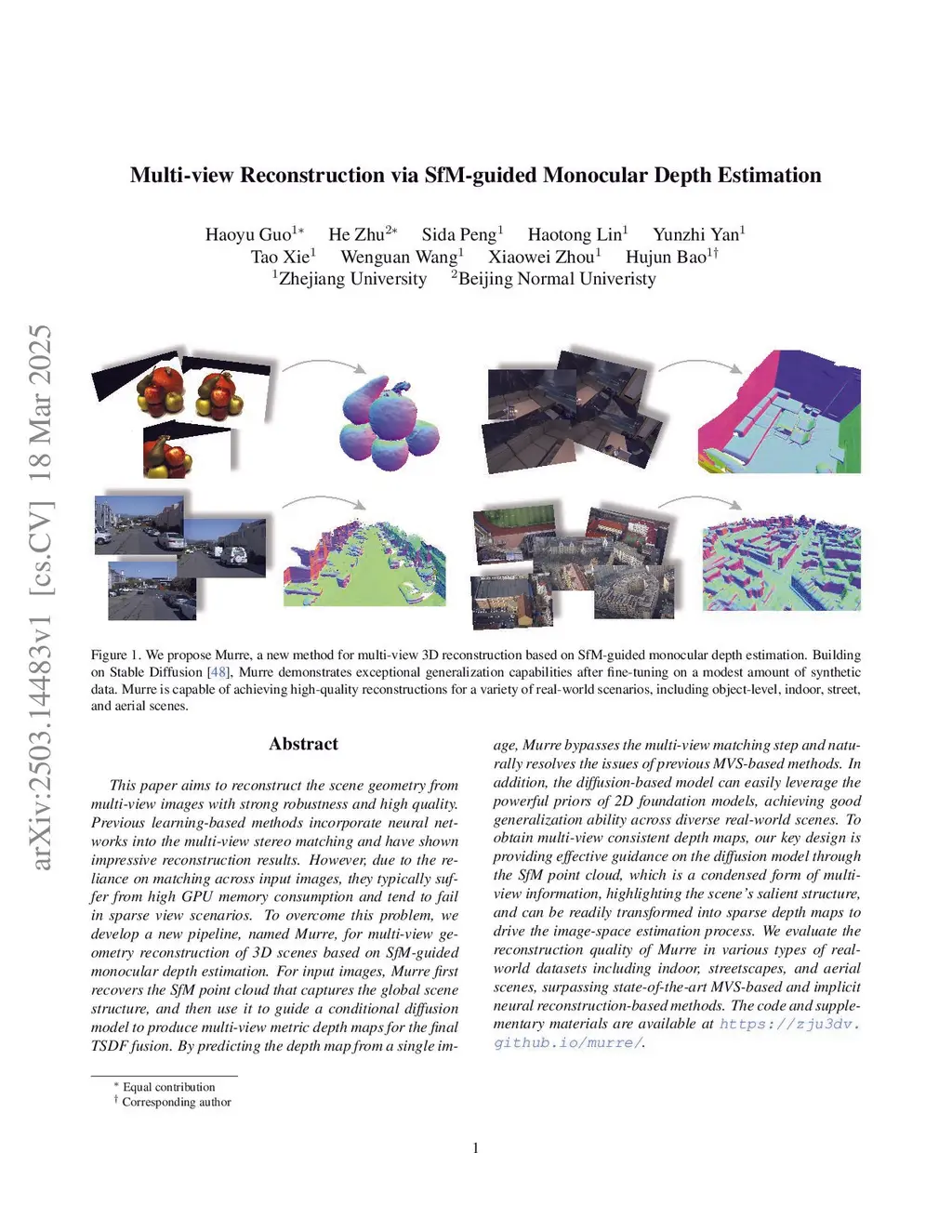 Multi-view Reconstruction via SfM-guided Monocular Depth Estimation