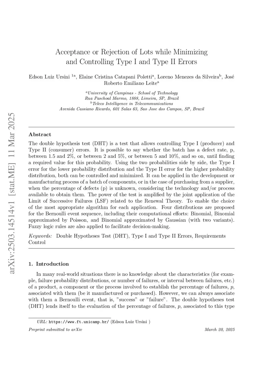 The double hypothesis test (DHT) is a test that allows controlling Type I (producer) and Type II (consumer) errors. It is possible to say whether the batch has a defect rate, p, between 1.5 and 2%, or between 2 and 5%, or between 5 and 10%, and so on, until finding a required value for this probability. Using the two probabilities side by side, the Type I error for the lower probability distribution and the Type II error for the higher probability distribution, both can be controlled and minimized. It can be applied in the development or manufacturing process of a batch of components, or in the case of purchasing from a supplier, when the percentage of defects (p) is unknown, considering the technology and/or process available to obtain them. The power of the test is amplified by the joint application of the Limit of Successive Failures (LSF) related to the Renewal Theory. To enable the choice of the most appropriate algorithm for each application. Four distributions are proposed for the Bernoulli event sequence, including their computational efforts: Binomial, Binomial approximated by Poisson, and Binomial approximated by Gaussian (with two variants). Fuzzy logic rules are also applied to facilitate decision-making.