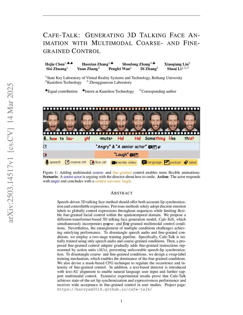 Cafe-Talk: Generating 3D Talking Face Animation with Multimodal Coarse- and Fine-grained Control