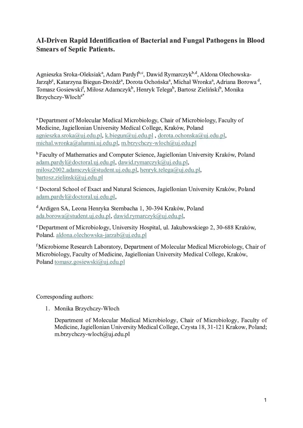 Sepsis is a life-threatening condition which requires rapid diagnosis and treatment. Traditional microbiological methods are time-consuming and expensive. In response to these challenges, deep learning algorithms were developed to identify 14 bacteria species and 3 yeast-like fungi from microscopic images of Gram-stained smears of positive blood samples from sepsis patients.A total of 16,637 Gram-stained microscopic images were used in the study. The analysis used the Cellpose 3 model for segmentation and Attention-based Deep Multiple Instance Learning for classification. Our model achieved an accuracy of 77.15% for bacteria and 71.39% for fungi, with ROC AUC of 0.97 and 0.88, respectively. The highest values, reaching up to 96.2%, were obtained for Cutibacterium acnes, Enterococcus faecium, Stenotrophomonas maltophilia and Nakaseomyces glabratus. Classification difficulties were observed in closely related species, such as Staphylococcus hominis and Staphylococcus haemolyticus, due to morphological similarity, and within Candida albicans due to high morphotic diversity.The study confirms the potential of our model for microbial classification, but it also indicates the need for further optimisation and expansion of the training data set. In the future, this technology could support microbial diagnosis, reducing diagnostic time and improving the effectiveness of sepsis treatment due to its simplicity and accessibility. Part of the results presented in this publication was covered by a patent application at the European Patent Office EP24461637.1 "A computer implemented method for identifying a microorganism in a blood and a data processing system therefor".