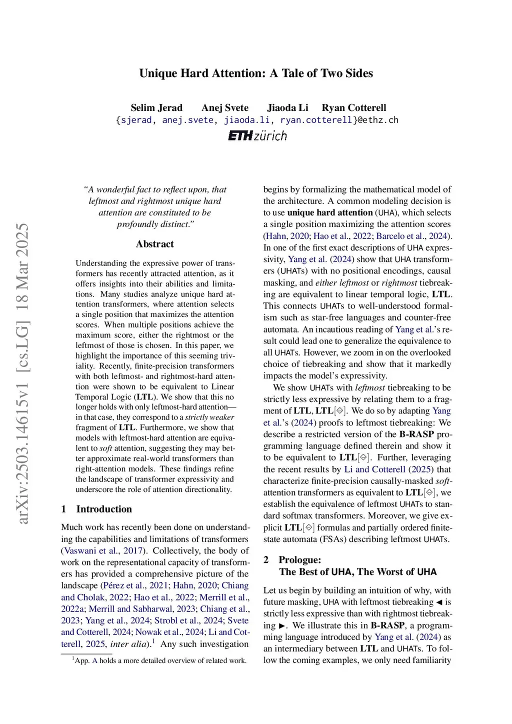 Unique Hard Attention: A Tale of Two Sides