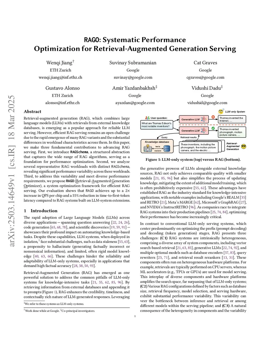 RAGO: Systematic Performance Optimization for Retrieval-Augmented Generation Serving