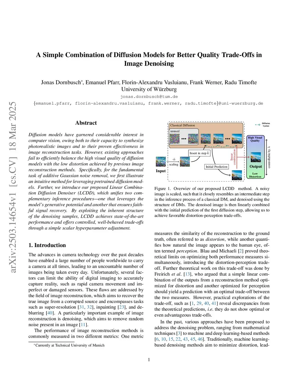 Diffusion models have garnered considerable interest in computer vision, owing both to their capacity to synthesize photorealistic images and to their proven effectiveness in image reconstruction tasks. However, existing approaches fail to efficiently balance the high visual quality of diffusion models with the low distortion achieved by previous image reconstruction methods. Specifically, for the fundamental task of additive Gaussian noise removal, we first illustrate an intuitive method for leveraging pretrained diffusion models. Further, we introduce our proposed Linear Combination Diffusion Denoiser (LCDD), which unifies two complementary inference procedures - one that leverages the model's generative potential and another that ensures faithful signal recovery. By exploiting the inherent structure of the denoising samples, LCDD achieves state-of-the-art performance and offers controlled, well-behaved trade-offs through a simple scalar hyperparameter adjustment.